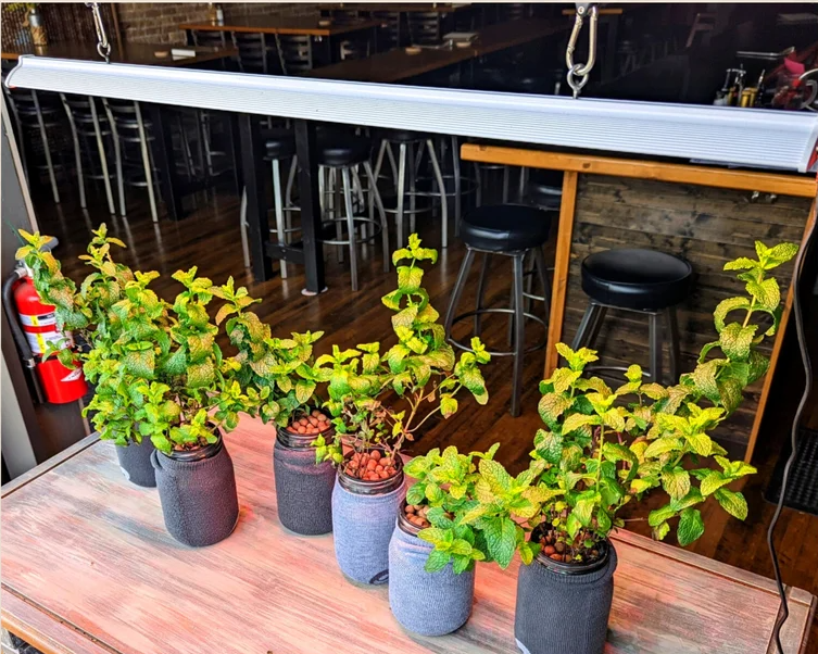 Mint being grown at a restaurant / / Se crece yerba buena en un restaurante